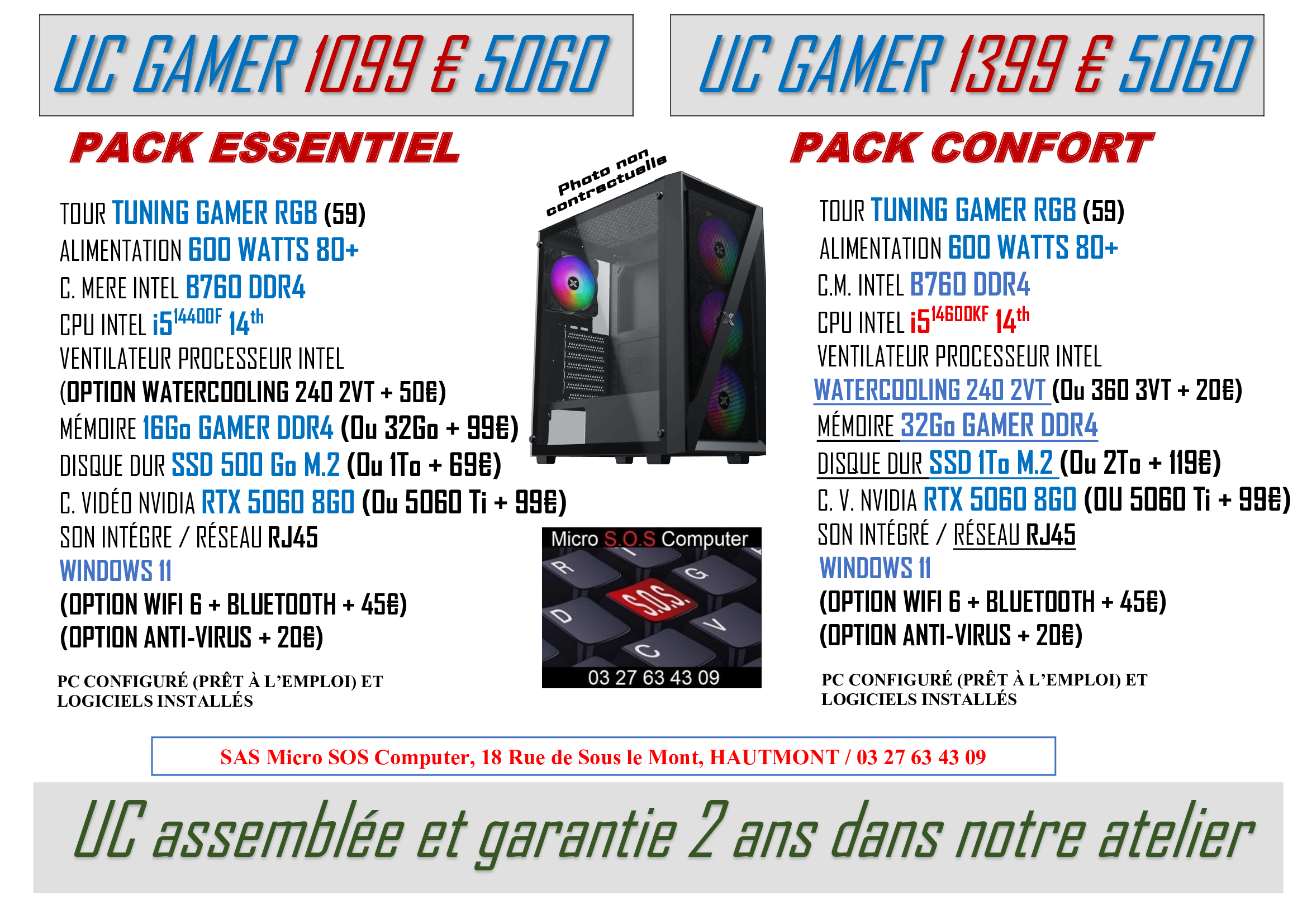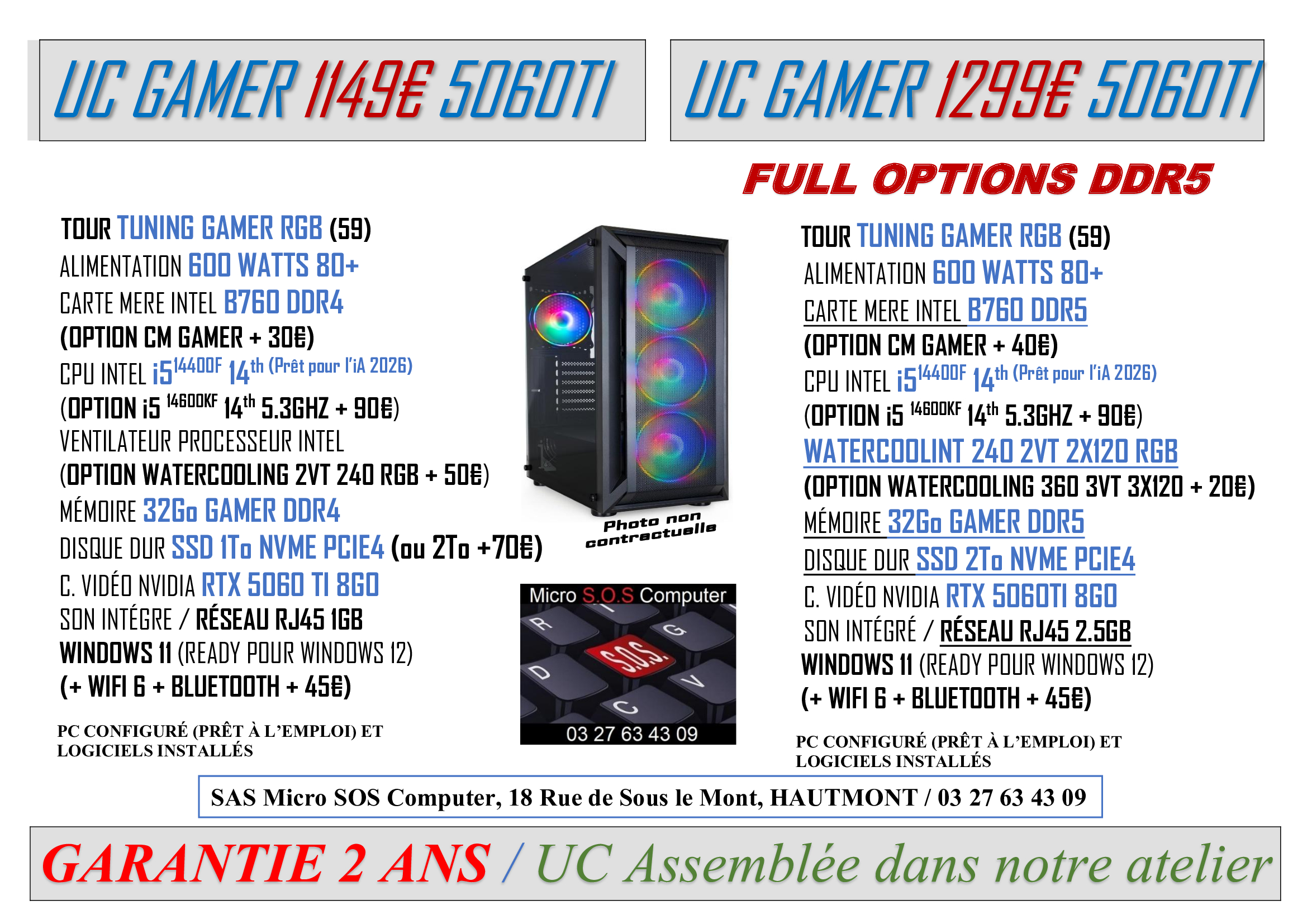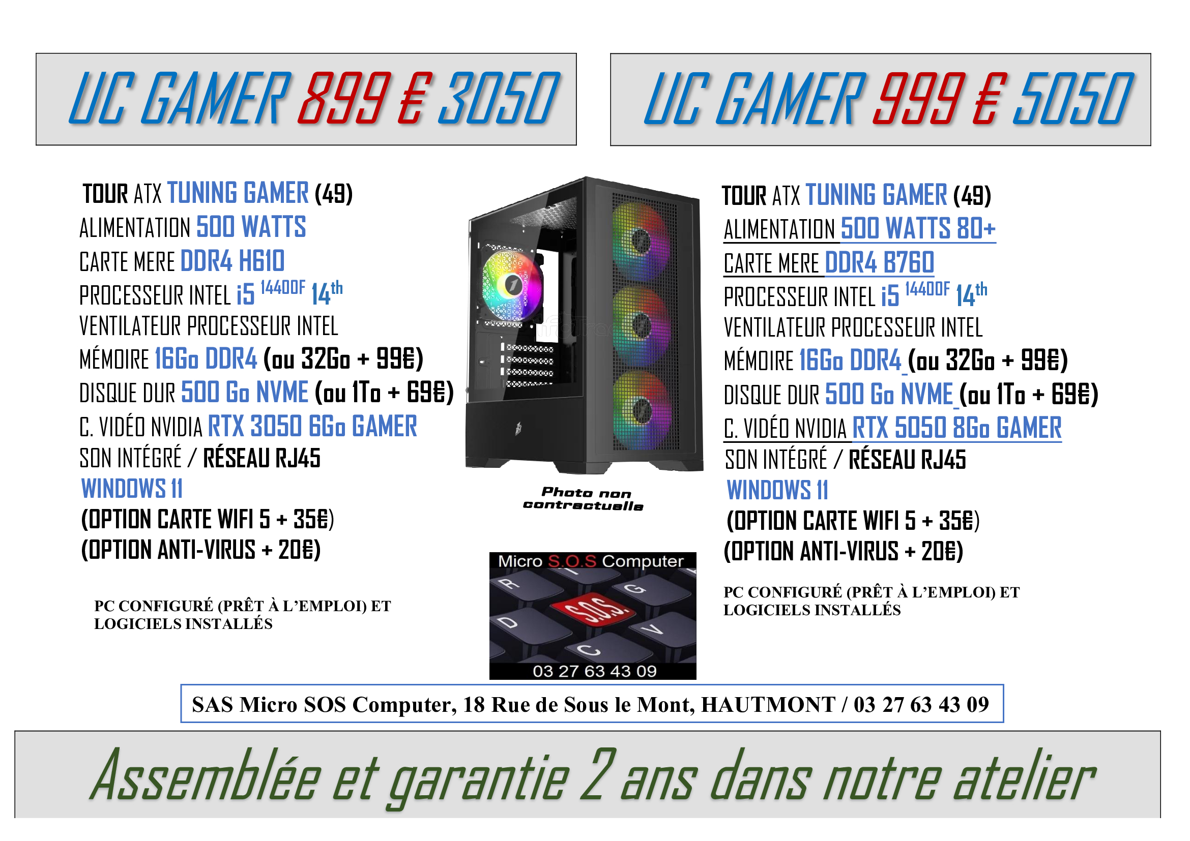 Tout matériel vendu sera garantie 2 ans, configuré et prêt à l’emploi avec différents logiciels installés pour son bon fonctionnement et votre confort.