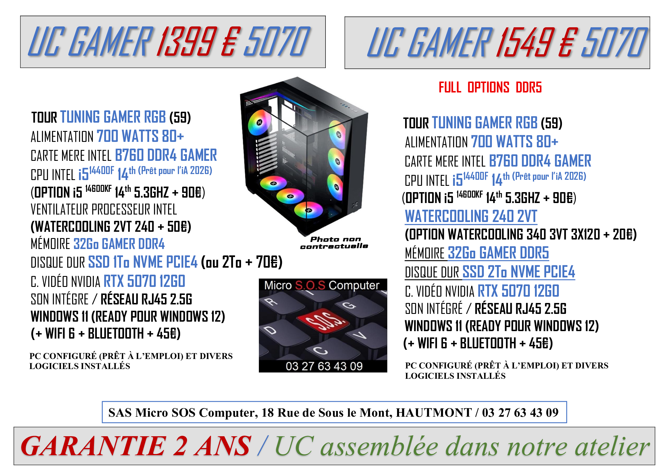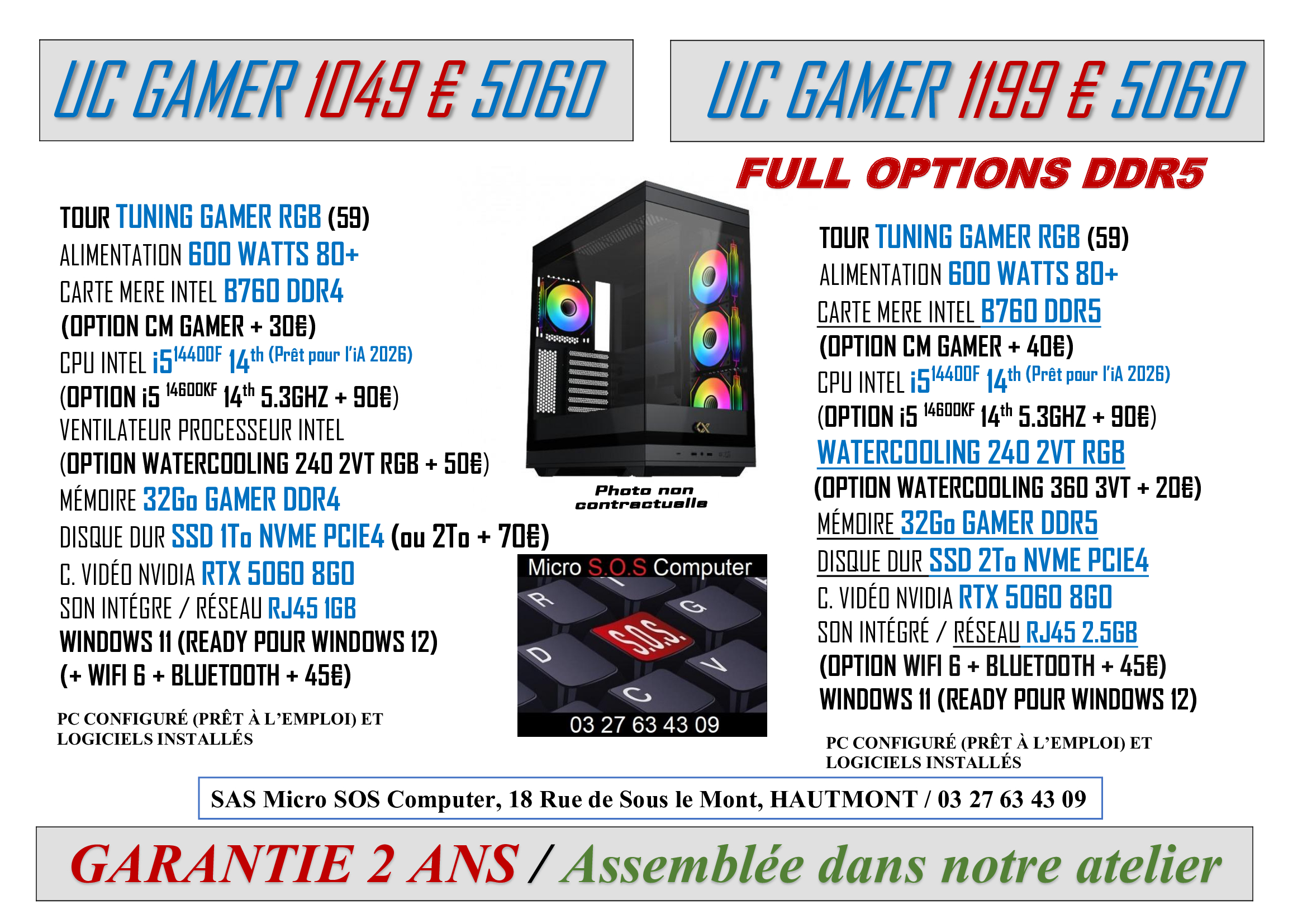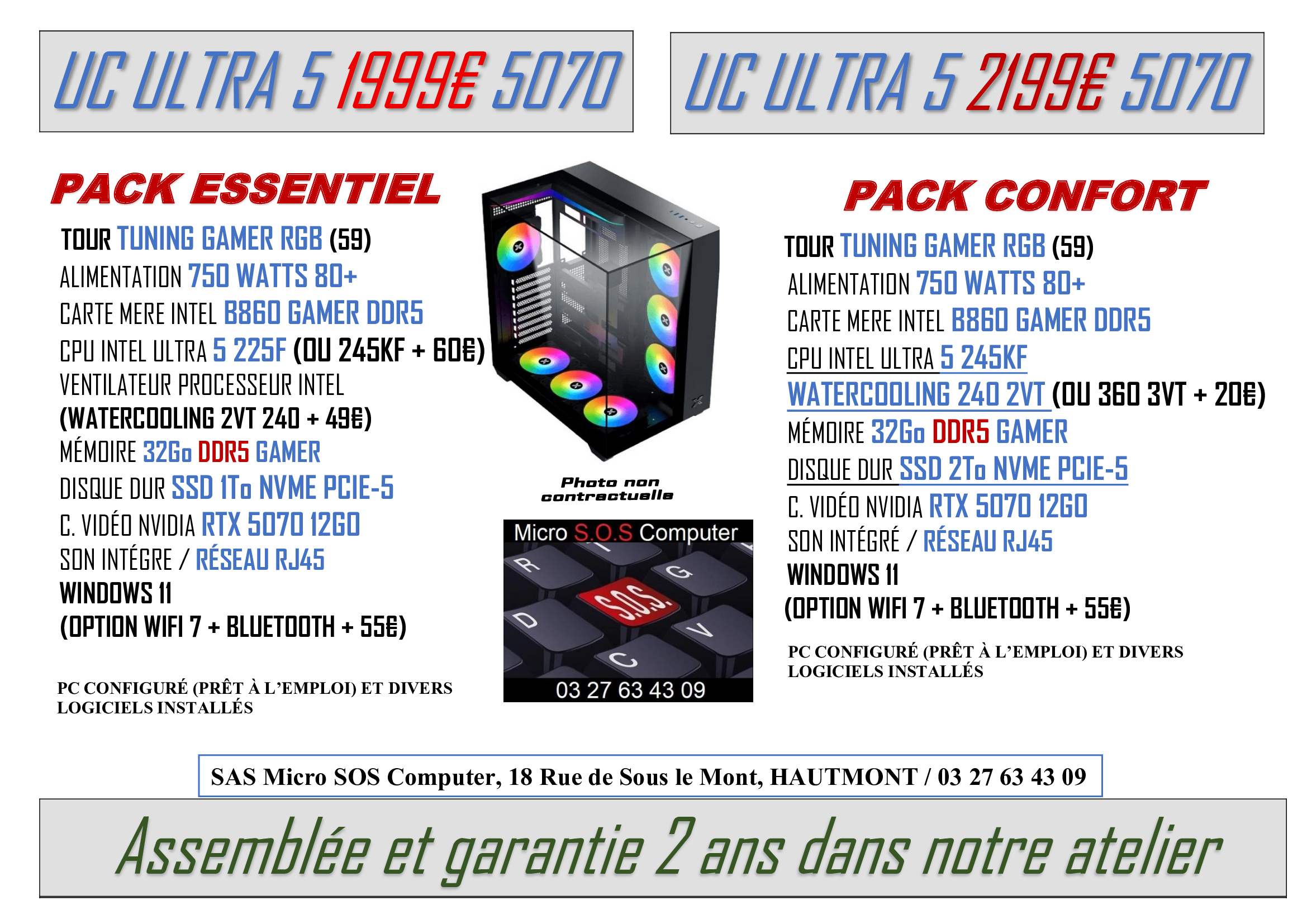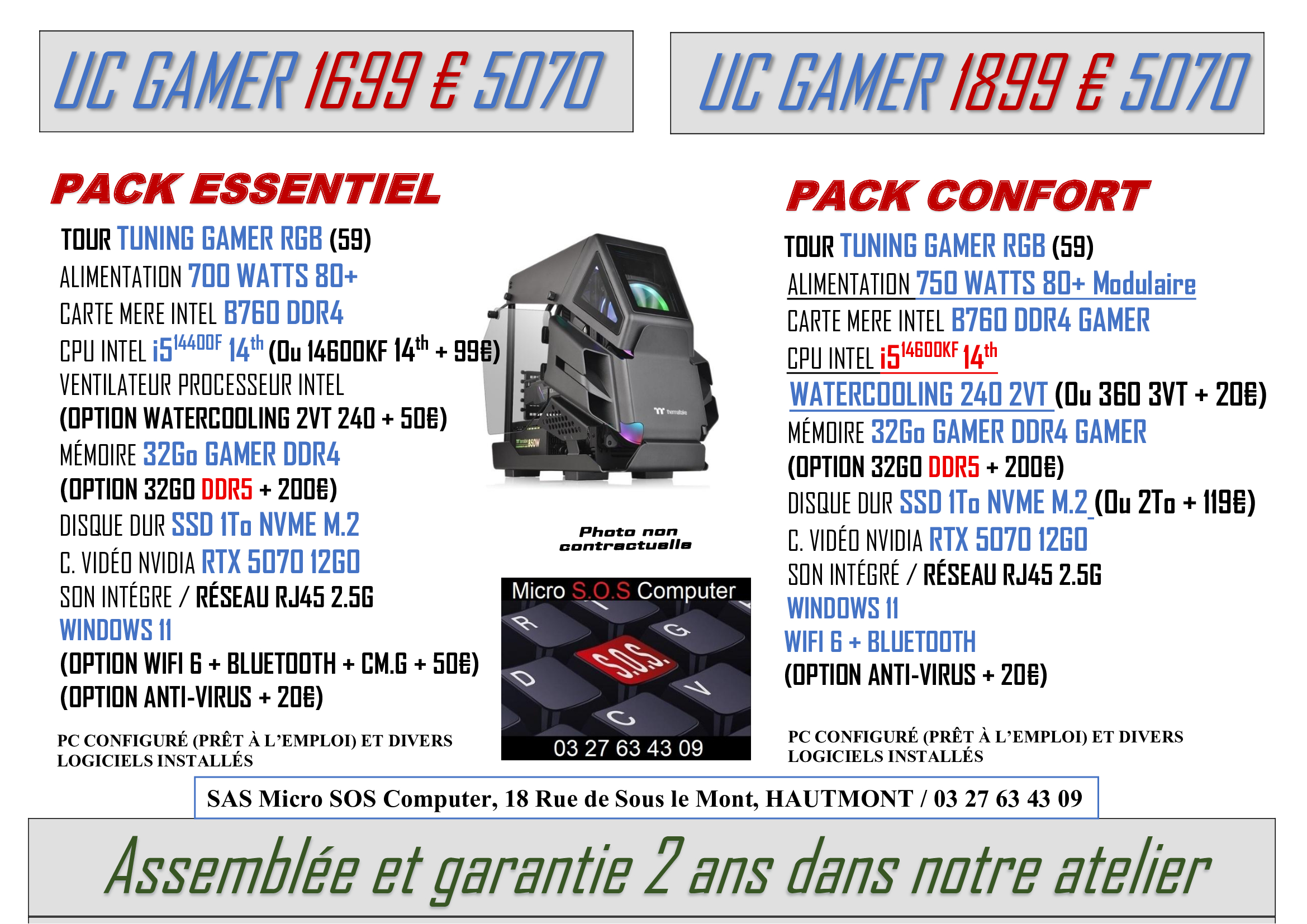 Tout matériel vendu sera garantie 2 ans, configuré et prêt à l’emploi avec différents logiciels installés pour son bon fonctionnement et votre confort.