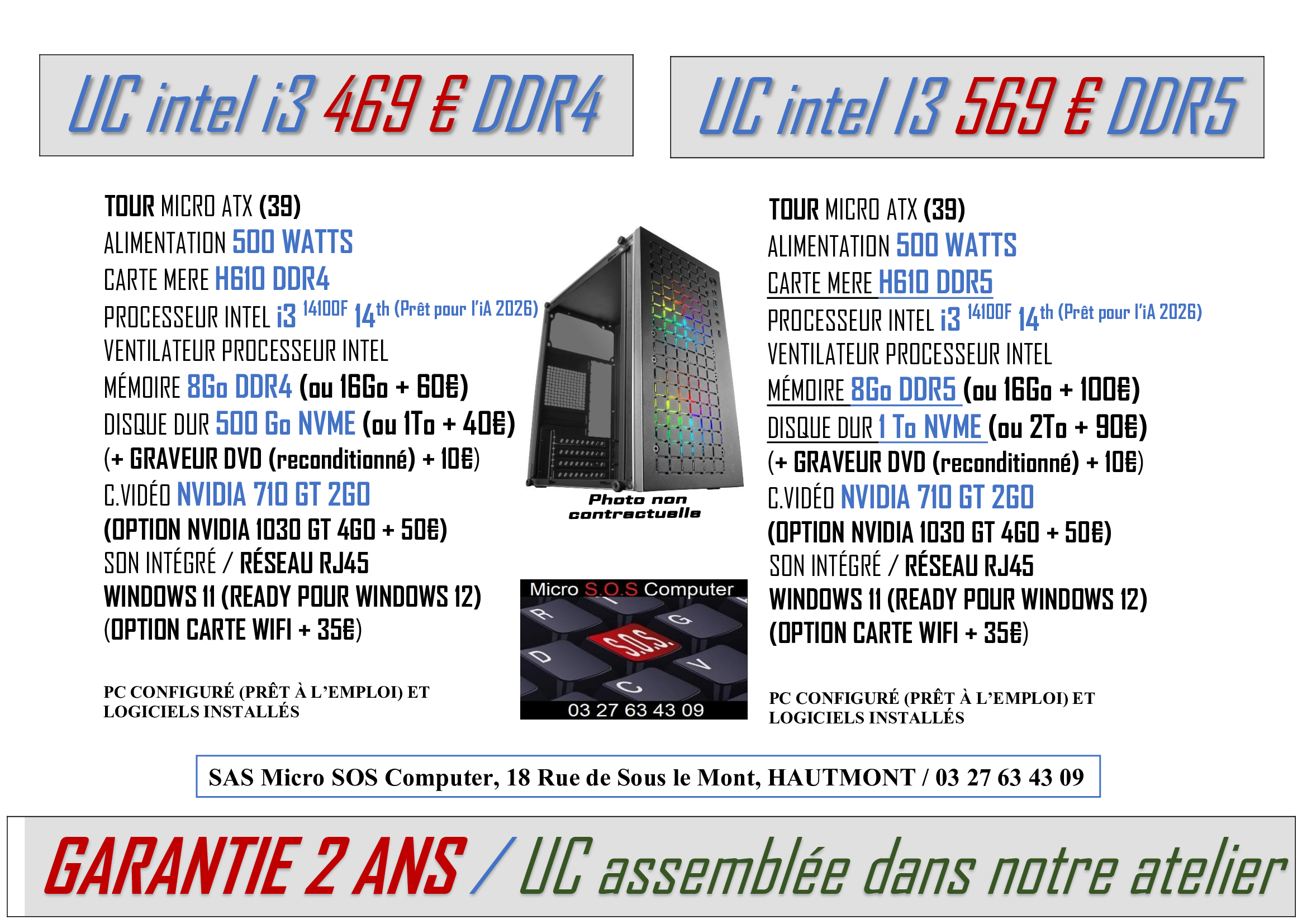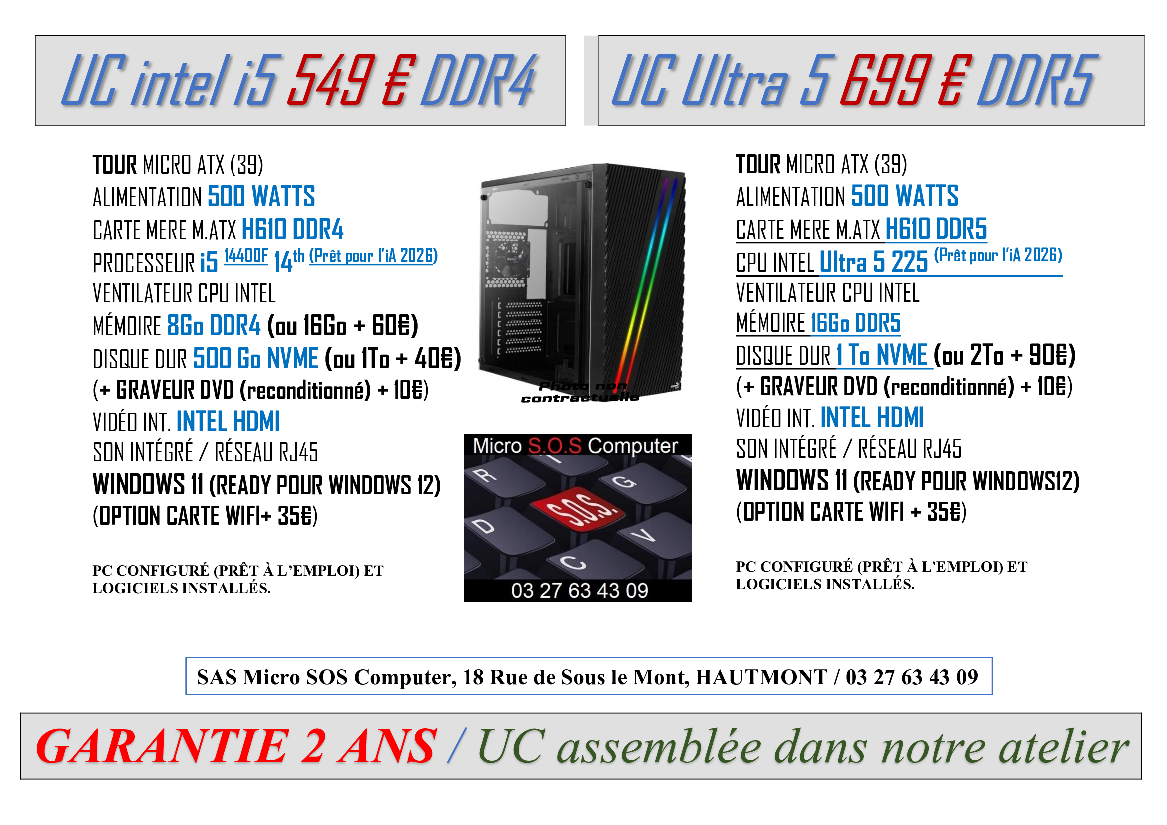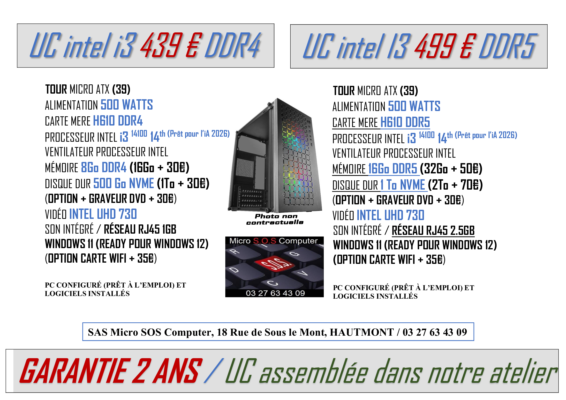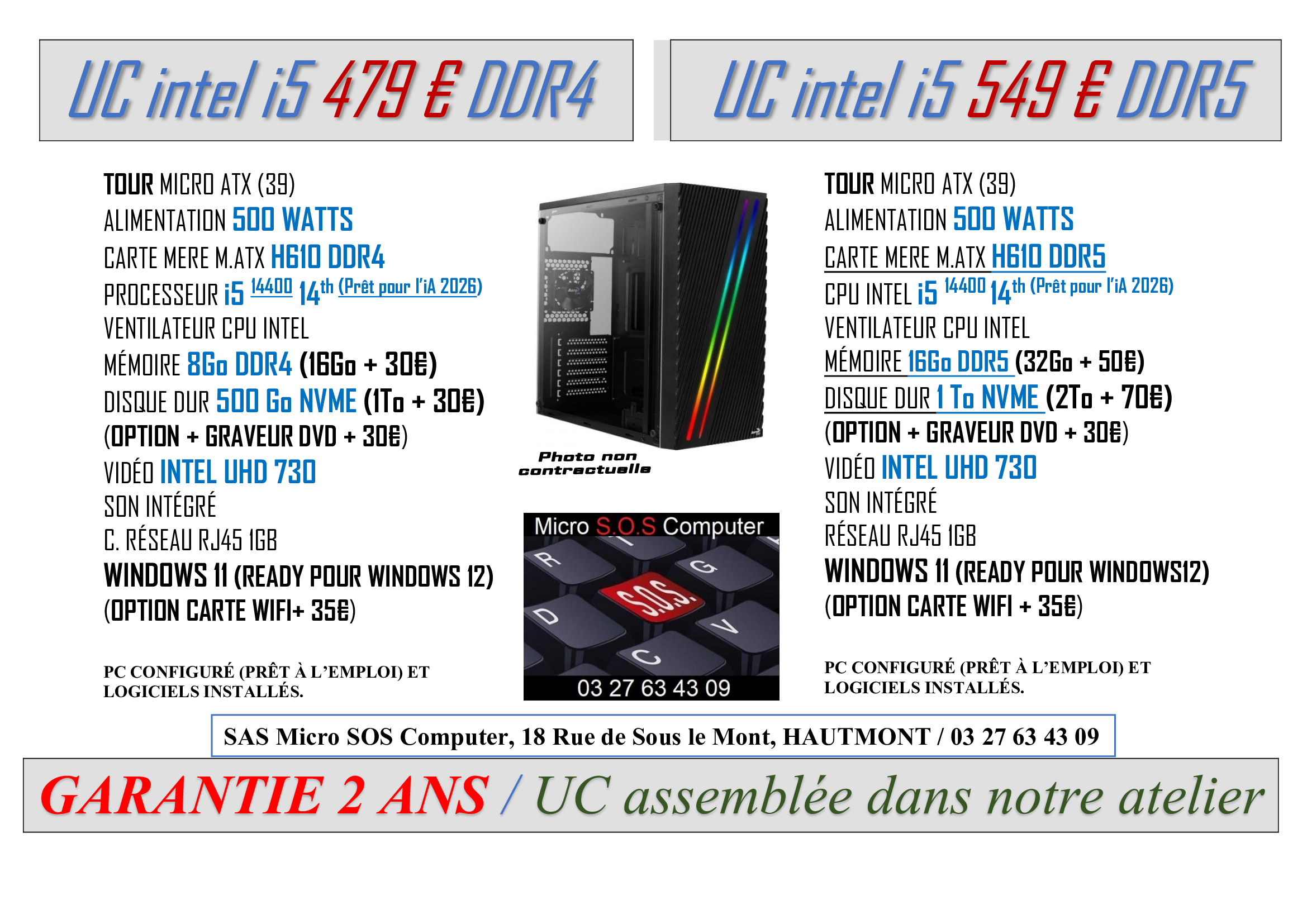 Tout matériel vendu sera garantie 2 ans, configuré et prêt à l’emploi avec différents logiciels installés pour son bon fonctionnement et votre confort.