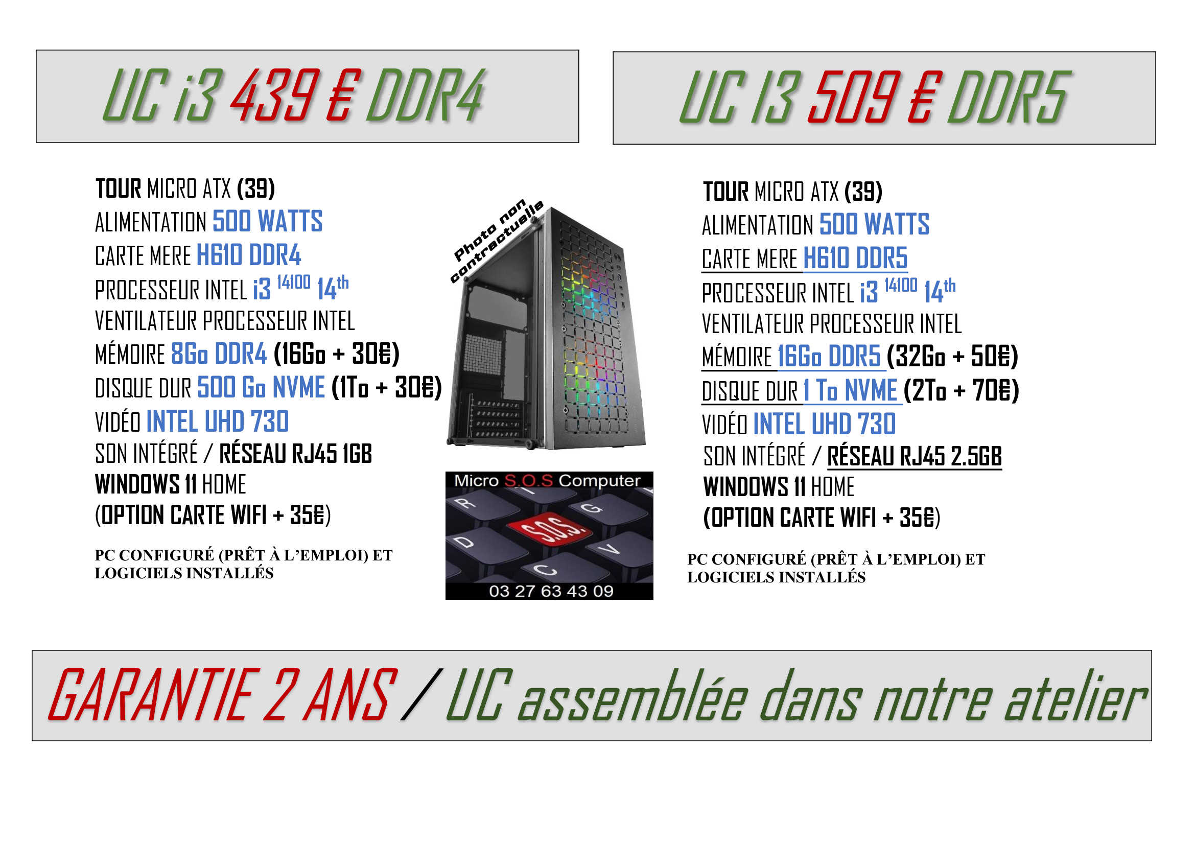 Tout matériel vendu sera garantie 2 ans, configuré et prêt à l’emploi avec différents logiciels installés pour son bon fonctionnement et votre confort.